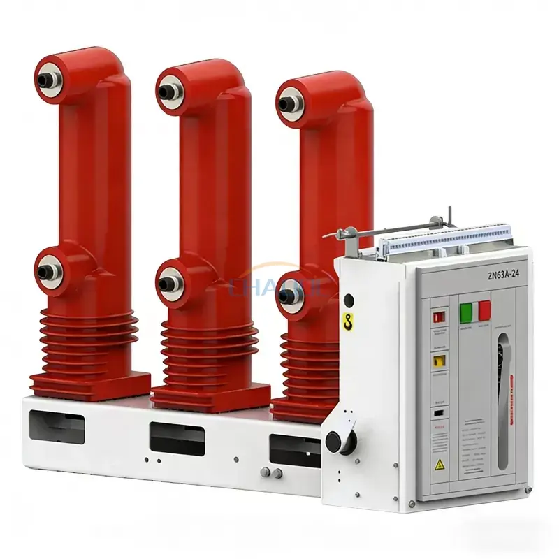 24KV側置真空遮断器の製品型式はZN63A(VS1)-24です。定格電圧 24kV の三相 AC 50Hz 電力システムで使用されます。その最大の特徴は、操作機構と遮断器本体の一体設計です。固定して設置することも、トロリー機構を備えた引き出し式ユニットとして使用することもできます。さまざまな種類の負荷や頻繁な動作機会に適用でき、工業、鉱業、発電所、変電所の電気機器の保護と制御に使用でき、冶金、化学、石炭産業に特に適しています。
